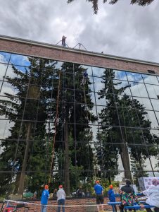 Jon Hubbell and Diane Malone shared stories of how they found ways to help people in need. Jon told of repelling down the front of a building in Lach. The goal was to raise $1000 for Thurston County Networks and Ron said proudly that the goal was exceeded. Diane added Sponsored Food Help for Thurston County was receiving help from and for Thurston County families in need.